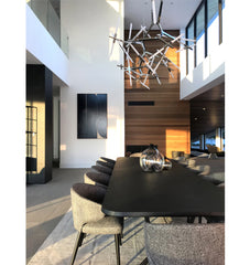 Originally conceived as a candelabra, Agnes takes its inspiration from the fictional heroine of the same name, a worker in the world's oldest profession during the 1849 California Gold Rush. The modular system would allow Agnes easy setup in her makeshift "workspace." In this version, glowing glass tubes replace the candles. Articulated joints allow the glass to be arranged in a multitude of ways.