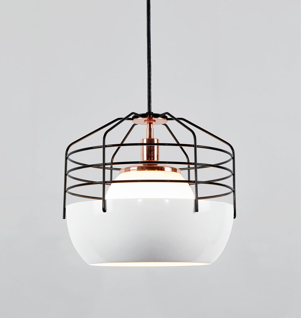 14-inch Bluff City pendant in white and black. Ships with 12-foot cord. Length can be adjusted on site. Bulbs not included, please purchase separately.