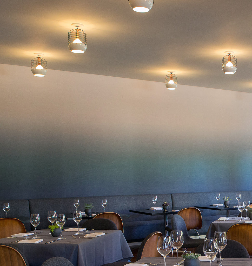 Bluff City merges a traditional pendant shade and a wire cage into an industrially inspired but refined pendant. A variety of finish combinations gives the light a vaguely postmodern feel that echoes the Memphis movement. However, the Tennessee town, known as Bluff City, was the inspiration for the series.