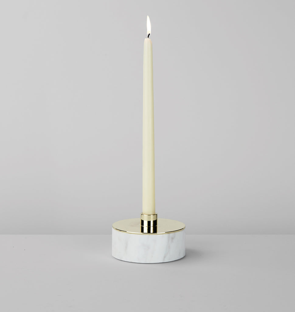 Cache Candle Holder Polished Brass / White Marble