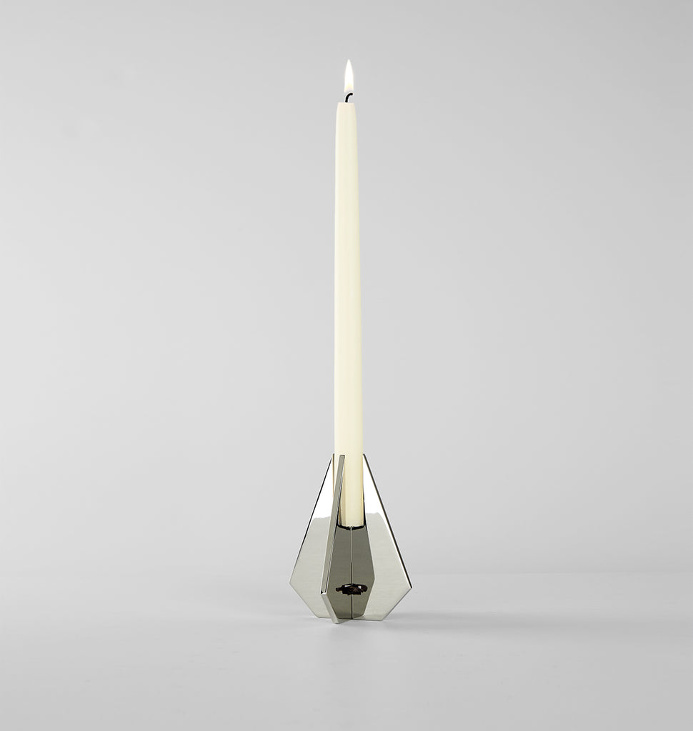 Cross 01 candle holder in polished nickel. Candles sold separately.