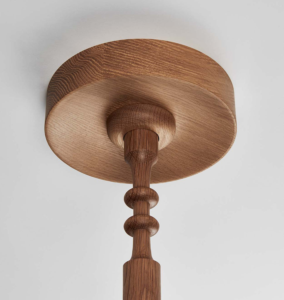 Helgerson's Del Playa is composed of turned wood stems and ceramic shades that recall her childhood on the beaches of Santa Barbara. The materials in this line feel very much of that time and place – the handcrafted aesthetic of California in the 70s.