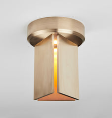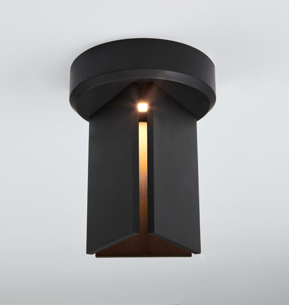 The Delta collection is part of a series of pieces originally designed by Post Company for Inness, a Hudson Valley country resort by tastemaker Taavo Somer that takes all of its cues from the surrounding landscape. Inspired by 19th-century lanterns, the collection strips down the idea to its essence, resulting in highly simplified and elegant assemblies. The attention to detail is evident. Solid metal plates soften the light like a series of louvers and create its three-sided profile.
