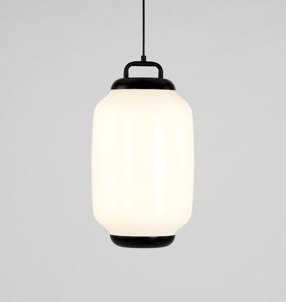 Black Esper 03 pendant with white glass. Ships with 8-foot cord. Length can be adjusted on site.