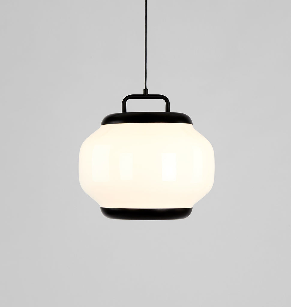 Black Esper 02 pendant with white glass. Ships with 8-foot cord. Length can be adjusted on site.