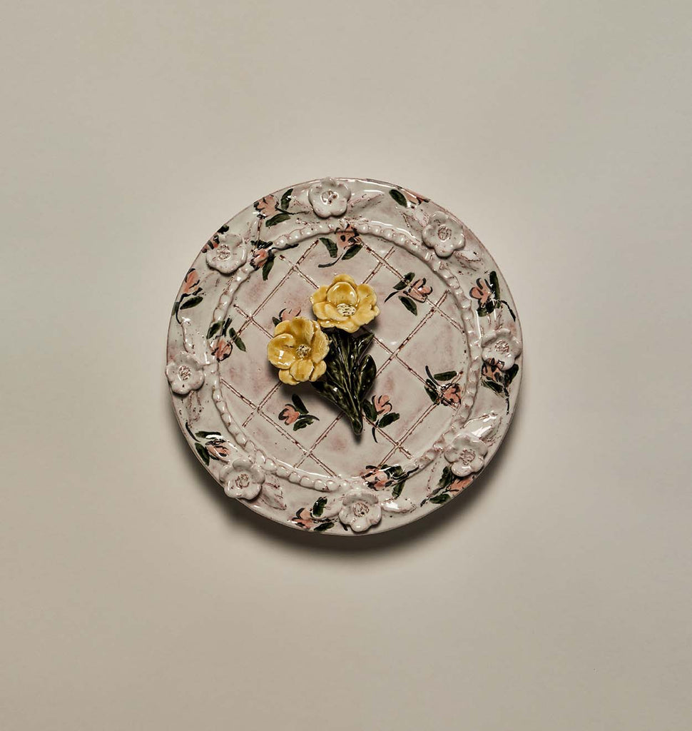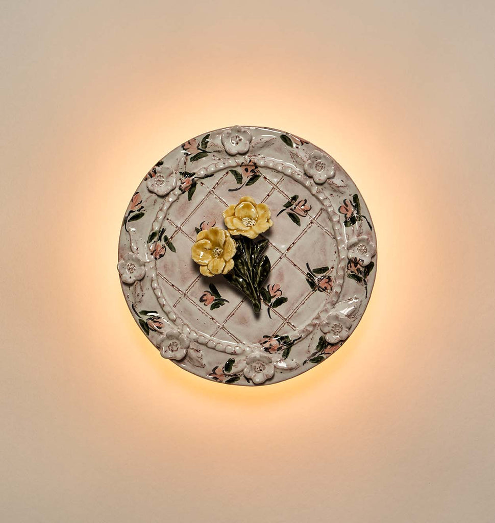 "Floral II", created by Maura Wright. Maura is a Kansas City–based artist working primarily in earthenware clay. Her bold, colorful vessels, lighting, and sculptures blend classical forms with playful, contemporary patterns, embracing the expressive nature of handmade ceramics. Wright holds an MFA from Alfred University and a BFA from the Kansas City Art Institute. Her work has been featured in Architectural Digest, Surface, Curbed, and Dwell.