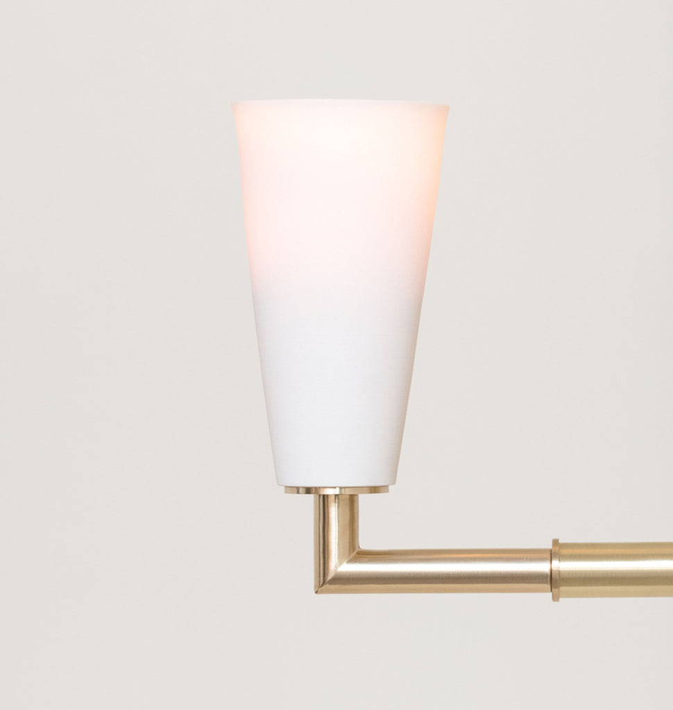 Grace epitomizes a refined blend of softness and structure. This exquisite luminaire, featuring porcelain and brass mounting, delicately illuminates the surrounding space with a gentle light.