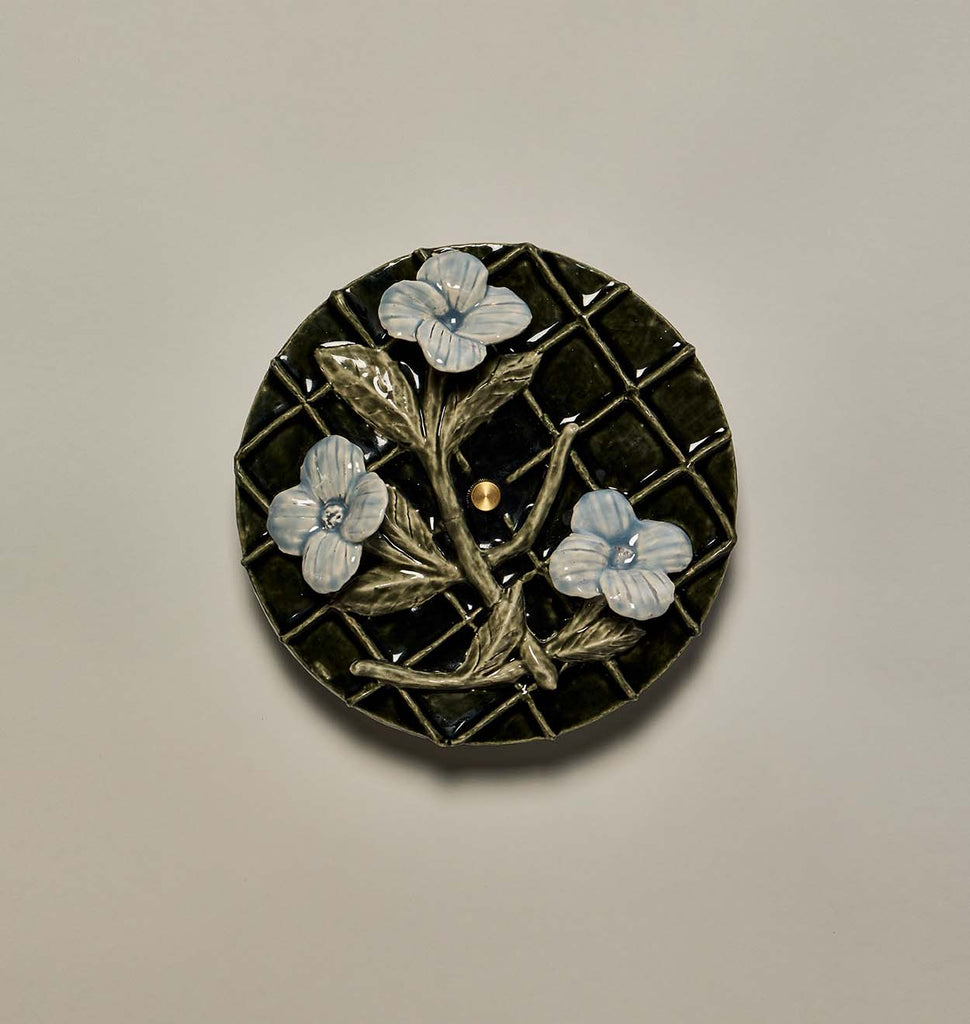 "Green Gridded", created by Maura Wright. Maura is a Kansas City–based artist working primarily in earthenware clay. Her bold, colorful vessels, lighting, and sculptures blend classical forms with playful, contemporary patterns, embracing the expressive nature of handmade ceramics. Wright holds an MFA from Alfred University and a BFA from the Kansas City Art Institute. Her work has been featured in Architectural Digest, Surface, Curbed, and Dwell.