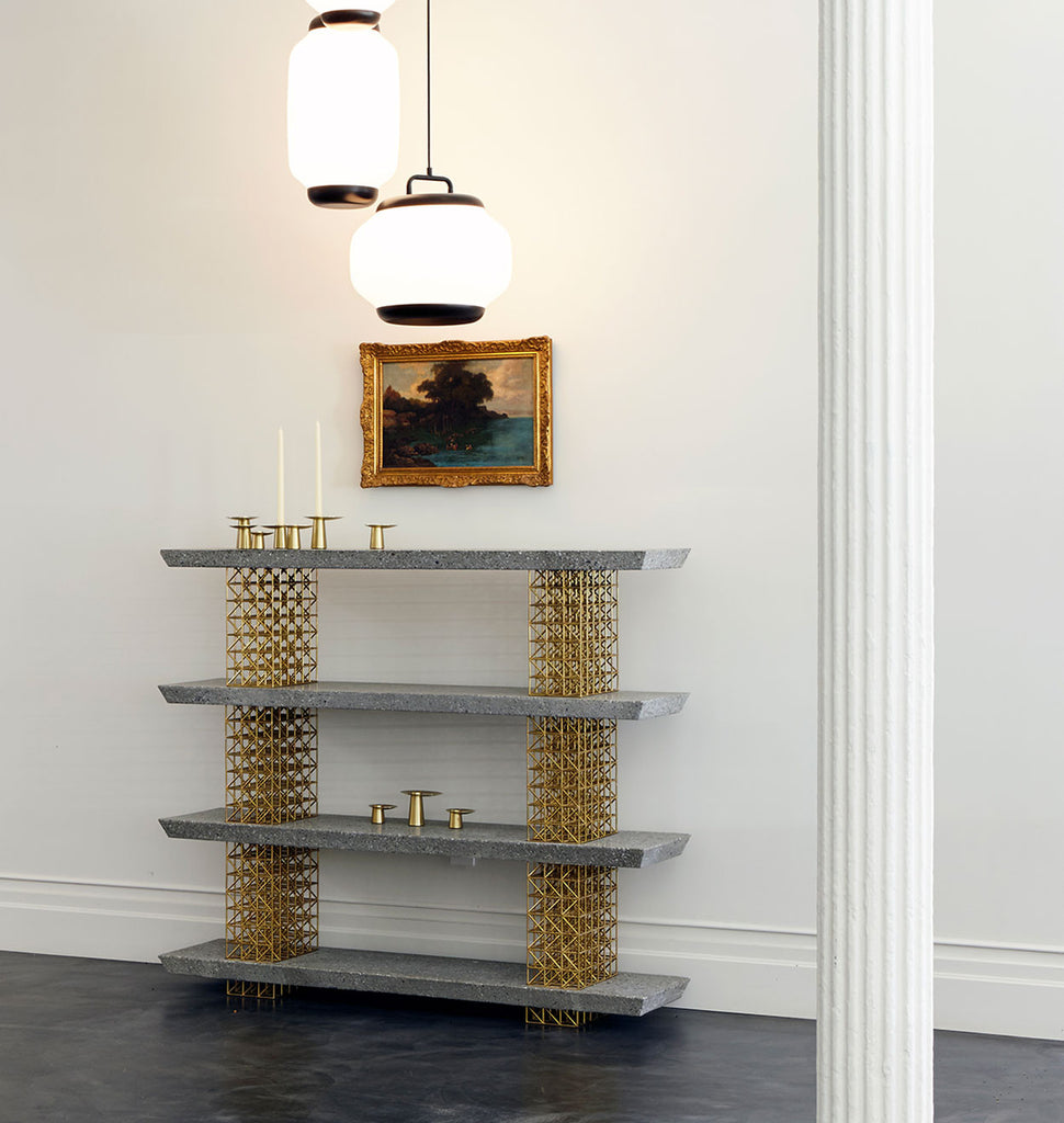 Raw and unpretentious, Gridlock is a series in the style of the Brutalist movement. Gridlock feels industrial in its straightforward, platonic forms and the repetitive efficiency of the grid; however, it is assembled entirely by hand from thousands of tiny brass parts. Philippe Malouin's tribute to the industry-inspired, labour-saving dreams of modernism is paid for in toil.