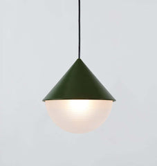 Green Half & Half pendant with a hemisphere, ribbed-glass shade in a clear frosted finish. Ships with 12-foot cord. Length can be adjusted on site.
