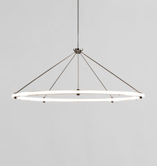 Paul Loebach envisioned the Halo series as a graceful exercise in the use of energy-efficient LED technology. The collection, which includes a range of ceiling and wall lights, is distinguished by its use of cascading rings and bars of light.